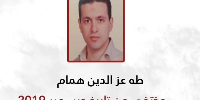 ورصدت المؤسسة استمرار الإخفاء القسري بحق المواطن "طه عز الدين همام مصطفى" 40 عاما، مهندس زراعي، وذلك بعد انتهاء فترة حبسه 5 سنوات على ذمة قضية سياسية في 29 ديسمبر2019.