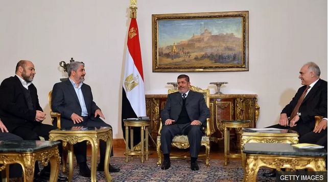 صحيفة “ذي إندبندنت” البريطانية في 2012 قالت إن مصر تقودها حكومة بزعامة جماعة الإخوان المسلمين التي تعتبر حركة حماس إحدى الفصائل التابعة لها، مضيفة أن الهجوم الإسرائيلي على غزة يشكل الاختبار الأخطر للرئيس المصري محمد مرسي منذ توليه زمام الأمور في بلاده. وأضافت أن مصر تريد من الولايات المتحدة كبح جماح إسرائيل، وبالمقابل تدعو واشنطن القاهرة إلى الضغط على حماس.