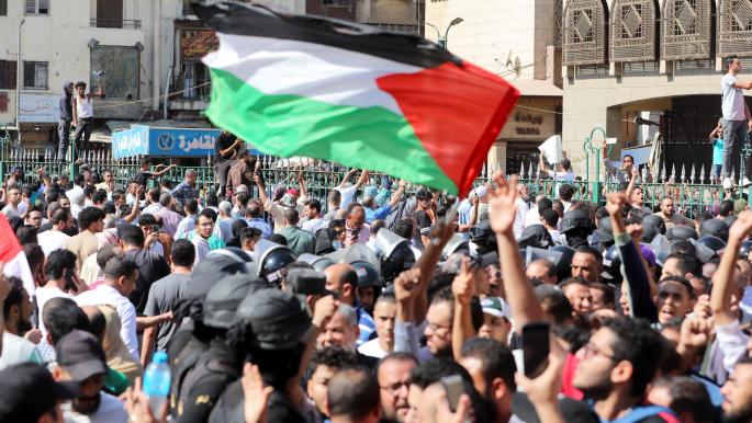 أما الحركة المدنية في مصر، فقد اتخذت من ساحات مسجد مصطفى محمود بحي المهندسين بالجيزة ساحة للتظاهر، وانطلقت في مسيرة بعد صلاة الجمعة مباشرة، وردّد المتظاهرون هتافات مؤيدة لفلسطين ومنددة بالاحتلال الإسرائيلي، منها “لا النقب ولا سينا.. فلسطين كاملة لينا”، و”تسقط تسقط إسرائيل”، و”تفويض إيه يا عم.. فلسطين أهم”، وغيرها.