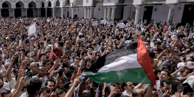 وبحسب تقرير نشره الموقع، ففي يوم جمعة مشمس في القاهرة، وصلت حافلات ترفع العلمين الفلسطيني والمصري إلى طريق النصر في حي مدينة نصر، وعندما انتهت صلاة الجمعة، انتهت معها لحظة الصمت الوحيدة التي تشهدها العاصمة المصرية بانتظام.