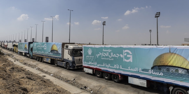 قالت مصادر أمنية وإنسانية مصرية: إن “قافلة ثانية من شاحنات المساعدات دخلت الجانب المصري من معبر رفح الحدودي اليوم الأحد متجهة إلى قطاع غزة” بحسب وكالة “رويترز”.