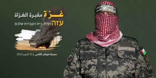 وتترقب الأمة العربية والإسلامية خطاب أبو عبيدة الناطق الرسمي باسم كتائب الشهيد عز الدين القسام الجناح العسكري لحركة المقاومة الإسلامية حماس، والذي أعلن عنه على قناة السراج الفضائية في حدود السابعة بتوقيت القاهرة من مساء الثلاثاء.