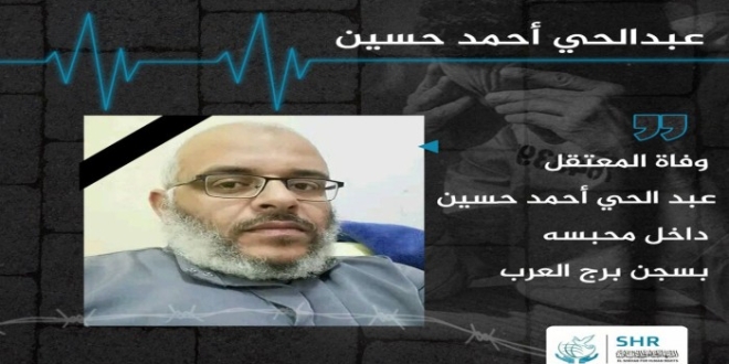 أعلن مركز الشهاب لحقوق الإنسان وفاة المعتقل عبد الحي أحمد حسين، من محافظة مرسى مطروح، في سجن برج العرب حيث كان معتقلا منذ نحو عام.