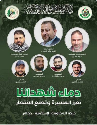 نعت حركة حماس وكتائب القسام الشهيدين سمير فندي وعزام أقرع، وهما من أبرز القيادات العسكرية لكتائب القسام في لبنان علاوة على نائب رئيس حركة حماس الشيخ صالح العاروري والذين اغتيلوا و4 شهداء آخرين من كوادر الحركة هم: الشهيد محمود زكي شاهين، الشهيد محمد بشاشة، الشهيد محمد الريس، الشهيد أحمد حمود.