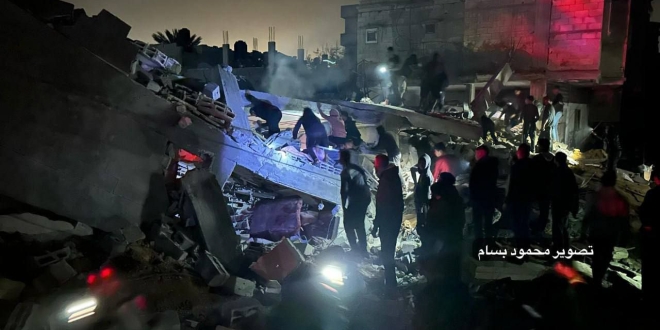 والليلة الماضية، استشهد 14 مواطنا وأصيب آخرون بقصف الاحتلال منزلاً لعائلة أبو عنزة في حي السلام شرق محافظة رفح جنوب قطاع غزة.