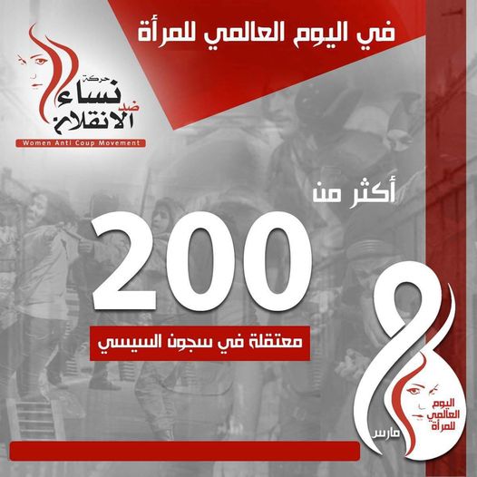 وقالت حركة نساء ضد الانقلاب إنه في اليوم العالمي للمرأة تقبع قرابة ٣٠٠ أسيرة في السجون المصرية ظلمًا وعدوانًا في ظروف قاسية ومعاملة غير آدمية منهم الأم والزوجة والأخت.