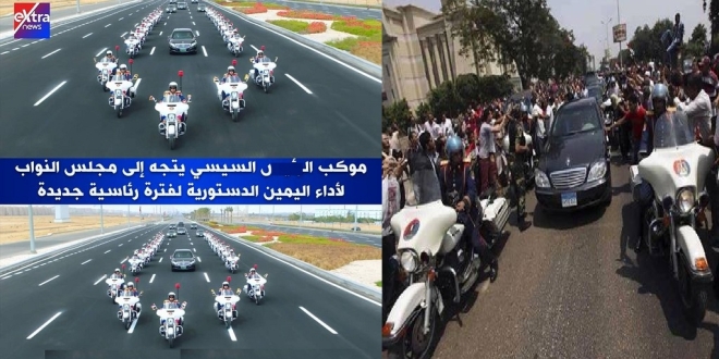 حساب المجلس الثوري المصري @ERC_egy قال: “هل تذكرون موكب الرئيس المنتخب محمد مرسي وهو في طريقه لأداء اليمين الدستورية لمنصب الرئيس في2012؟ لم يسمي أحد الحدث حينها #حفل_التنصيب لأن التنصيب للملوك ولم يكن د. مرسي يرى نفسه ملكاً، بل موظفاً عند الشعب وخادماً له عكس #السيسي الذي لا يمل من تكرار آية “يؤتي الملك من يشاء” لنصدقه”.
