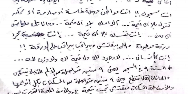 وكان المعتقل بجسن برج العرب محمد وسام عبدالعزيز بعث برسالة مبدئيا لأخته وكان نصها: