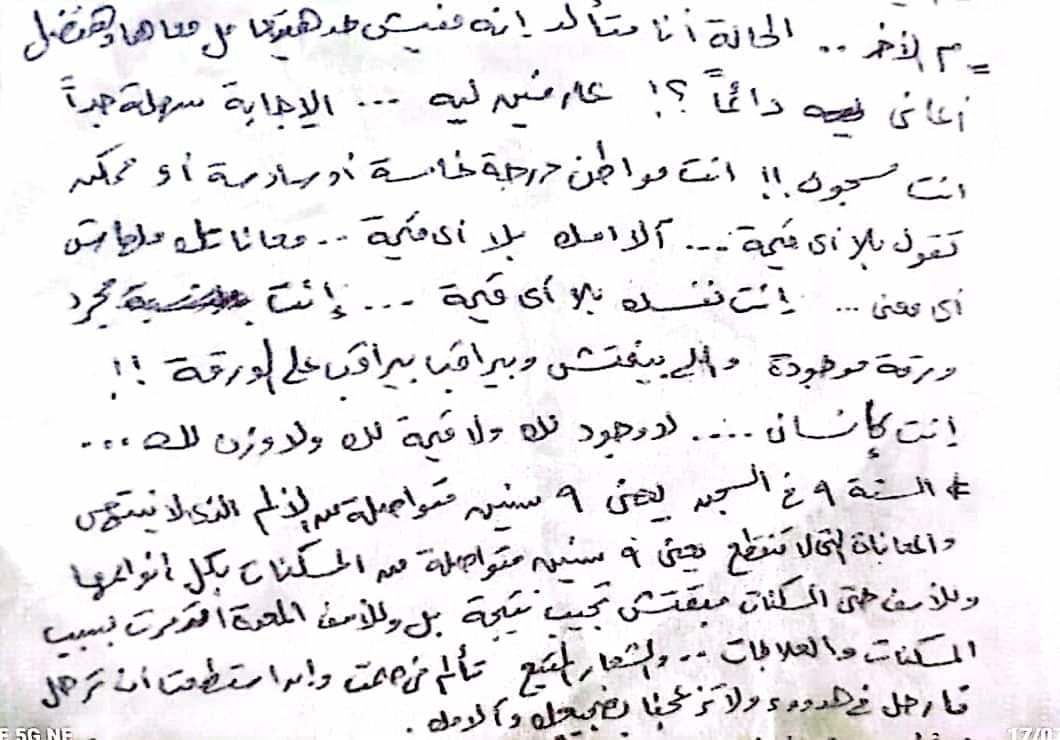 وكان المعتقل بجسن برج العرب محمد وسام عبدالعزيز بعث برسالة مبدئيا لأخته وكان نصها: