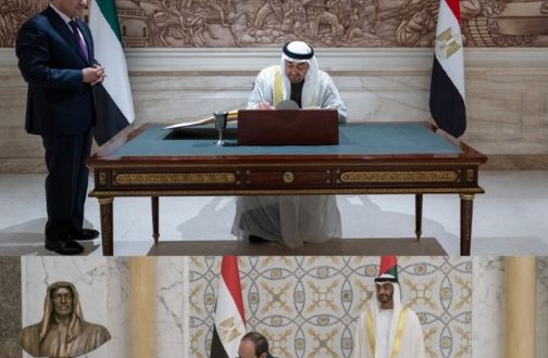 انتقص مراقبون وناشطون على منصات التواصل الاجتماعي الصورة التي ظهر فيها السيسي أمام محمد بن زايد بمشهد الخانع الذليل وهو يتابع تسجيل محمد بن زايد أحد أبرز المطبعين مع الكيان الصهيوني وزعيم الثورة المضادة كلمات في دفتر ضخم بقصر السيسي الرئاسي بالعاصمة الإدارية شرق القاهرة.