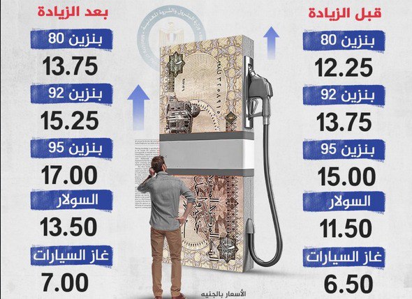 بعدما قررت حكومة الانقلاب رفع أسعار الوقود بنسب وصلت 17%، لتكون الزيادة الثالثة في أقل من 6 شهور، ساد الغضب تعليقات شخصيات عامة ونشطاء على مواقع التواصل الإجتماعي.