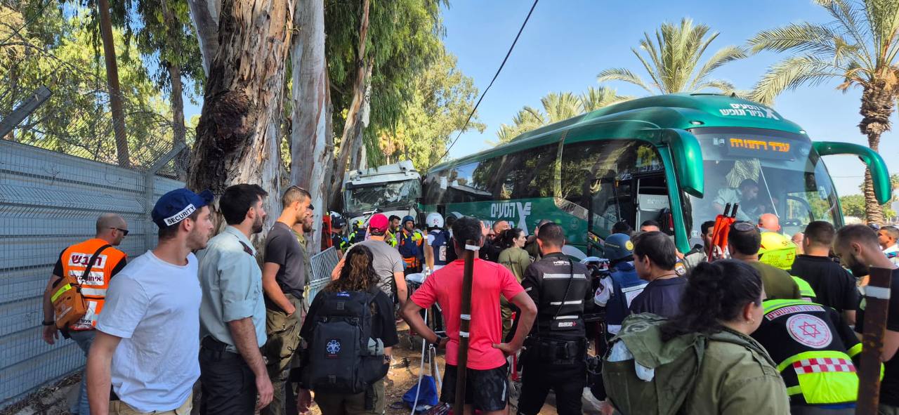 وقالت “نجمة داوود الحمراء” إنّها “تتعامل مع عشرات الإصابات جراء اصطدام شاحنة بمحطة للحافلات شمالي تل أبيب”، وتم استدعاء مروحية لنقل الجرحى.