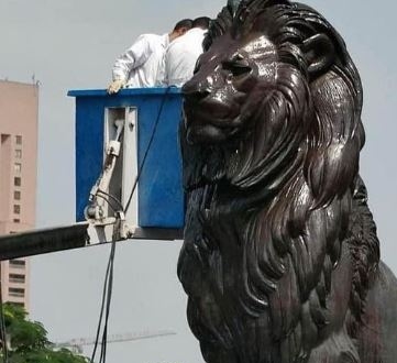 وقارن أبو شريفة بين ما حدث للأسود و”رأس نفرتيتي “المسخ”، والتماثيل التي توضع في واجهة المحافظات ولا علاقة لها بالنحت الفترة الأخيرة عنا ببعيد “.