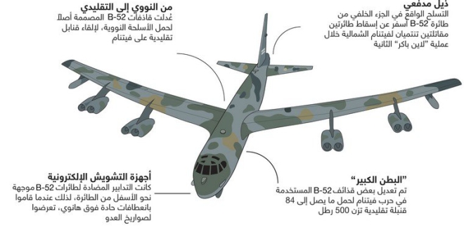 وطائرات B52 “ستراتوفورتريس” ذات الثمانية محركات، والتي يمكن أن يحمل بعضها أكثر من 80 ألف رطل من الذخائر، لأول مرة في عام 1954 صُممت لتكون قاذفة عابرة للقارات يمكنها نقل حمولات نووية في أي مكان في العالم.