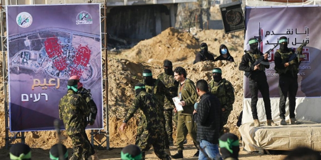 كان طيف قائد هيئة أركان كتائب القسام الشهيد محمد الضيف حاضراً اليوم السبت، خلال عملية تسليم الكتائب، الجناح العسكري لحركة حماس، ثلاثة محتجزين إسرائيليين في مدينة خانيونس وميناء مدينة غزة، حيث رفع عناصر “القسام” صور القادة الشهداء الذين أُعلِنَ استشهادهم أخيراً، وأطلقوا هتافات تحيي الضيف، كما ظهرت بندقية قنص “الغول” التي طوّرتها الكتائب بشكل لافت خلال مراسم التسليم، ضمن الدفعة الرابعة من تبادل الأسرى والمحتجزين، في إطار المرحلة الأولى من اتفاق وقف إطلاق النار في غزة.