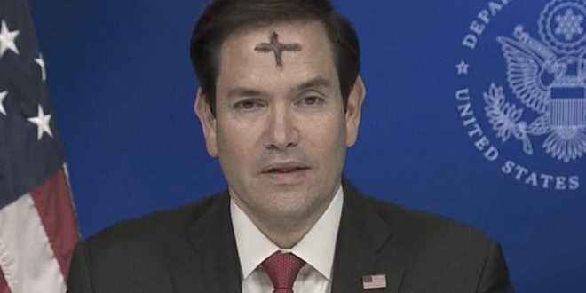 أثار وزير الخارجية الأميركي ماركو روبيو الجدل برسمه علامة الصليب على وجهه خلال لقاء تلفزيوني تحدث فيه عن تهديدات ترامب لأهالي غزة وحماس.