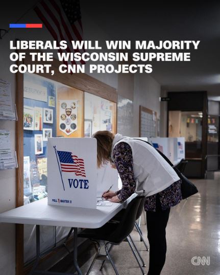حافظ التيار الليبرالي على الأغلبية في المحكمة العليا لولاية ويسكونسن، وذلك بعد فوز القاضية سوزان كراوفورد على منافسها المحافظ براد شيميل في واحدة من أكثر الانتخابات القضائية متابعة وتمويلًا في تاريخ الولايات المتحدة.