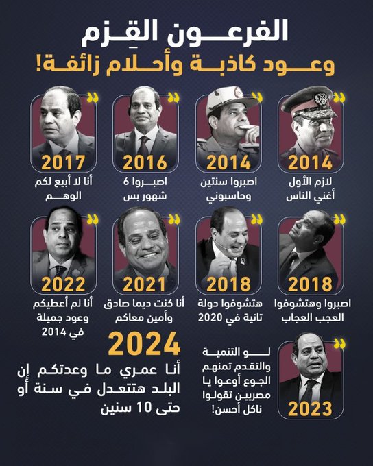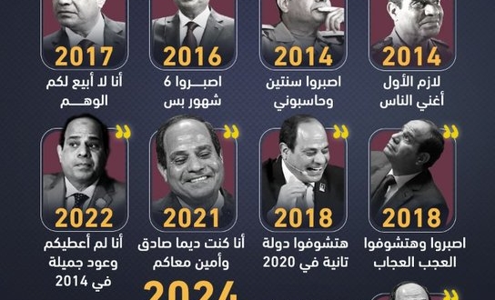 وقبل أيام أعلن رئيس حكومة السيسي عن أن 40% من المصريين يعانون فقر الدم، وهو رقم يكشف نكوص السيسي وعصابة الانقلاب عن الوعود التي أطلقوها في 2014 مع أول حكومة له، ثم عاد وتنصل منها "أنا وعدتكم بحاجة؟" ساترا بطغيانه بجاحته التي غطت وفاضت فضلا عن فشله الذي حققه مع أول يوم من انقلابه في 3 يوليو 2013 وما زال مستمرا معه حتى يواريه الثري.