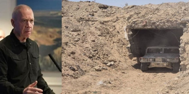 وكشف وزير الدفاع الإسرائيلي السابق يوآف جالانت أن الصورة المشهورة، التي نشرها الجيش الإسرائيلي لما قال إنه نفق ضخم في محور فيلادلفيا جنوب قطاع غزة على الحدود مع مصر وعمقه عشرات الأمتار تحت الأرض، كانت كاذبة.