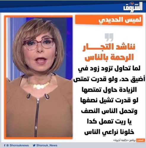 كان لافتا ثناء البعض “الحقوقي” على مهنية لميس الحديدي الشهيرة بمرضعة إبليس صاحبة المقولة الشهيرة “دكتور مرسي ..مش قد الشيلة متشيلش”، والتي جنبتها الشركة المتحدة قبل أشهر لأشهر، ثم عادت فأعلنت توجيه الشكر ل”الحديدي” وتجنبت الاتفاق على عدم تجديد التعاقد معها (وليس كل إعلان استغناء تخليا).