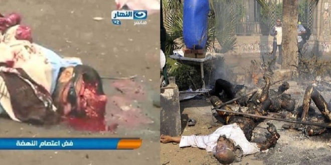 ومع فض ميدان النهضة بالجيزة في 14 أغسطس 2013، في وقت أقل مقارنة بفض ميدان رابعة العدوية، كشفت تقارير أن نحو 40 شخصًا أُحرقوا على أيدي جنود وضباط الشرطة والجيش، وكانت جثثهم مرمية أمام جامعة القاهرة وفي محيط الميدان وحديقة الحيوان المجاورة.