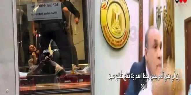 وأظهر مقطع فيديو متداول؛ اختطاف شاب صغير من أمام القنصلية المصرية في نيويورك، وساعات قليلة فقط تفصلنا عن أن يصبح الحدث فضيحة سياسية تتناوله وسائل الإعلام الأميركية، مبيّنة كيف يتصرّف الدبلوماسي وفق تعليمات وزيره البلطجي بدر عبد العاطي.