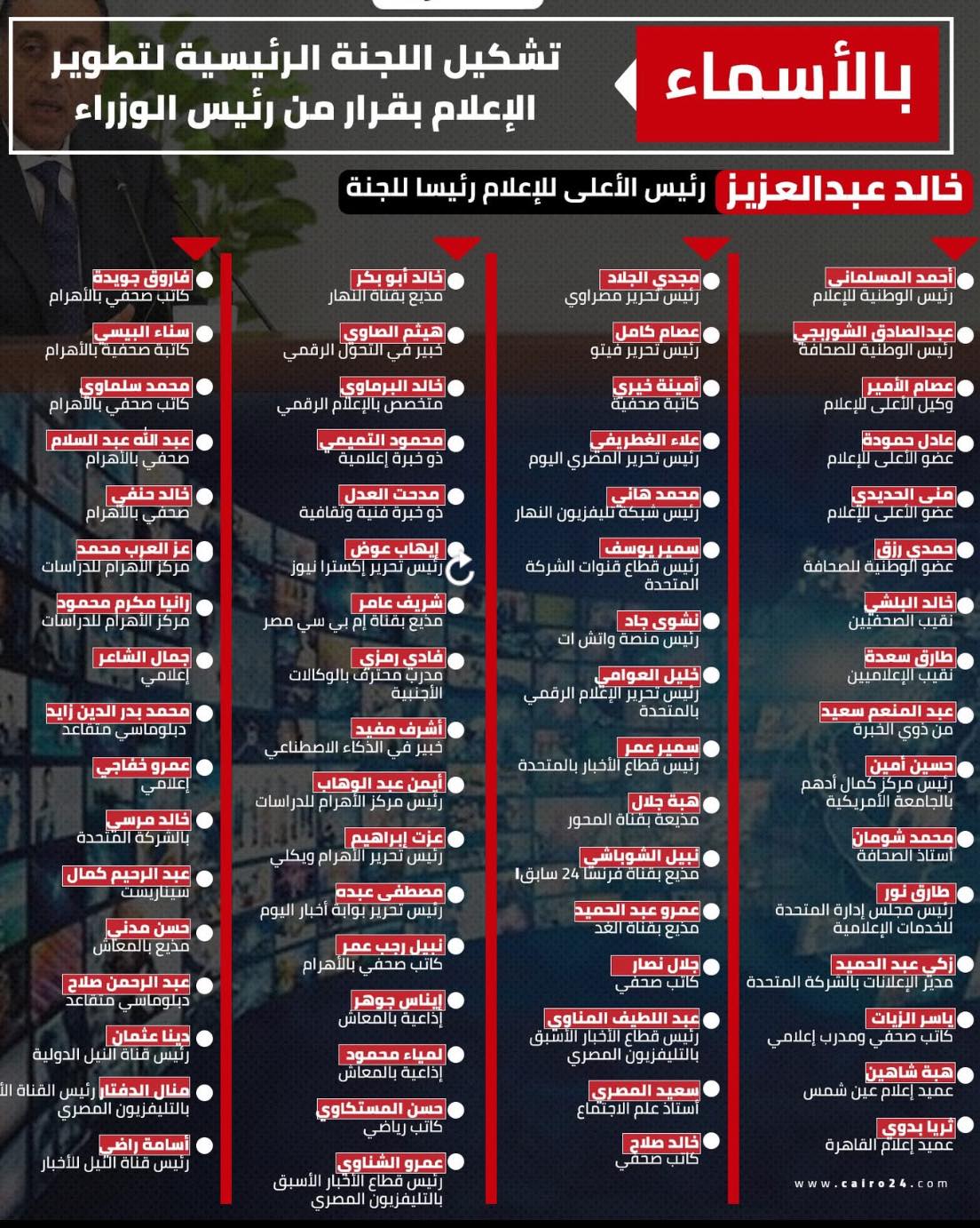 وفي السياق الحالي، يشير إلى تشكيل لجنة رسمية رفيعة المستوى لتطوير الإعلام جل من فيها داعمو الانقلاب وأبرز مهامهم الأخرى؛ دمج الصحافة الورقية والرقمية، ورفع تقرير شامل خلال شهرين للسيسي.