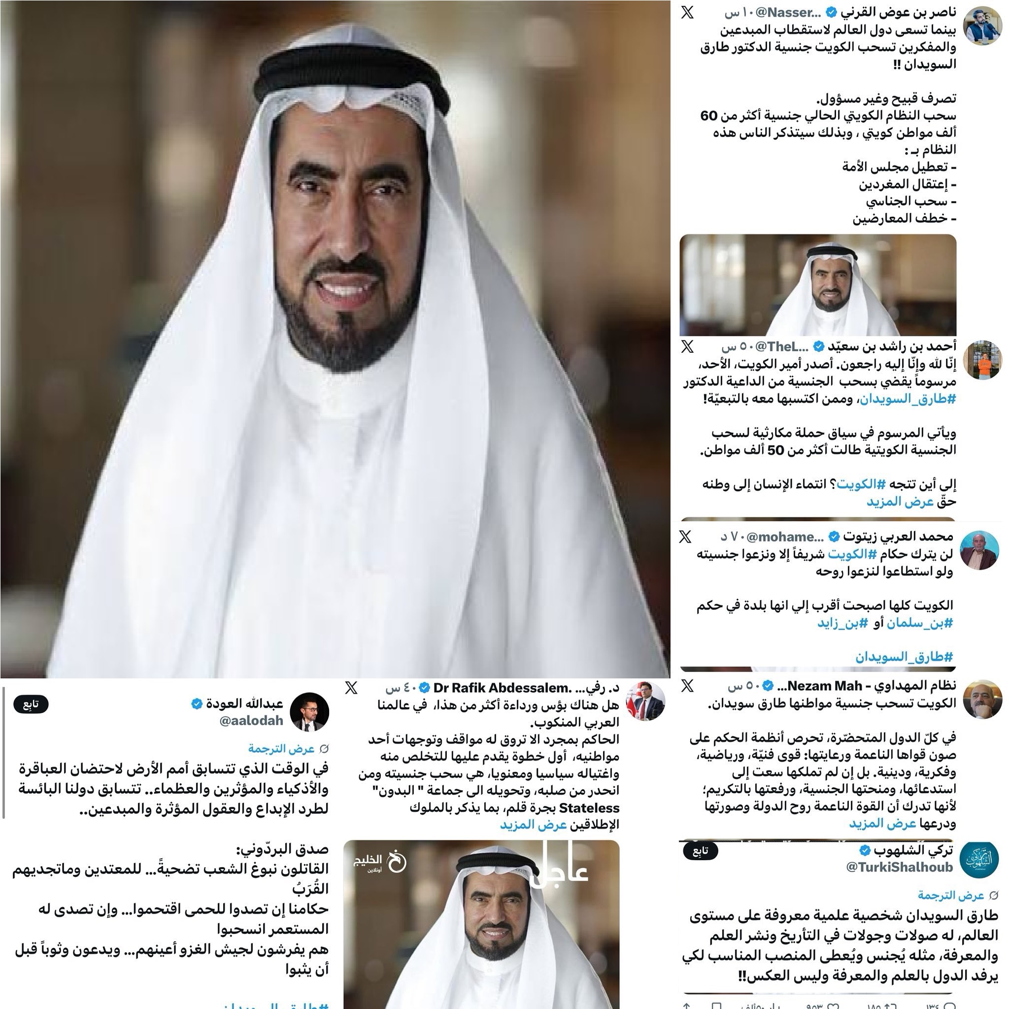 "النظام الكويتي يسحب الجنسية من الدكتور طارق السويدان، رغم أن عائلته كويتية أبًا عن جد، لكن هذا ما يحصل عندما يتصرف الحاكم كأن البلد مزرعته الخاصة".