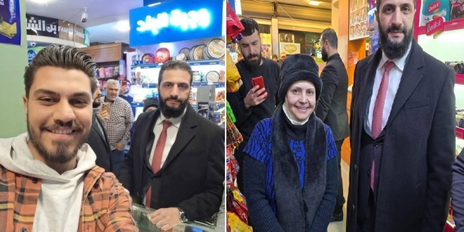 ومساء اليوم، بث الإعلام السوري صورًا وفيديوهات للرئيس الشرع وهو يتجول في حي المزة بدمشق، داخل أحد المتاجر، مبتسمًا ويتعامل بالعملة السورية الجديدة.