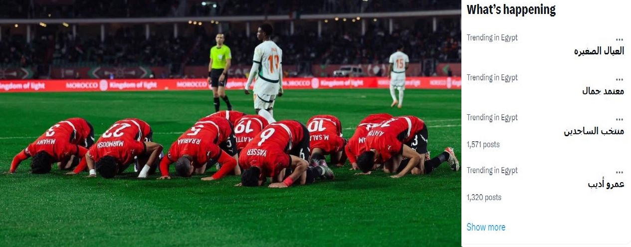 وتأهل منتخب مصر لنصف نهائي أمم أفريقيا أعاد للناس روح الجيل الذهبي—جيل السجدة الشهيرة بعد كل هدف وانتصار—فانتشر الهاشتاج بشكل واسع واحتل قائمة الترند في مصر خلال دقائق.