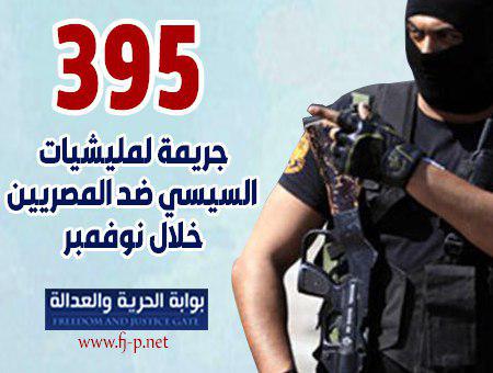 إنفوجراف| 395 جريمة لميليشيات السيسي ضد المصريين خلال نوفمبر