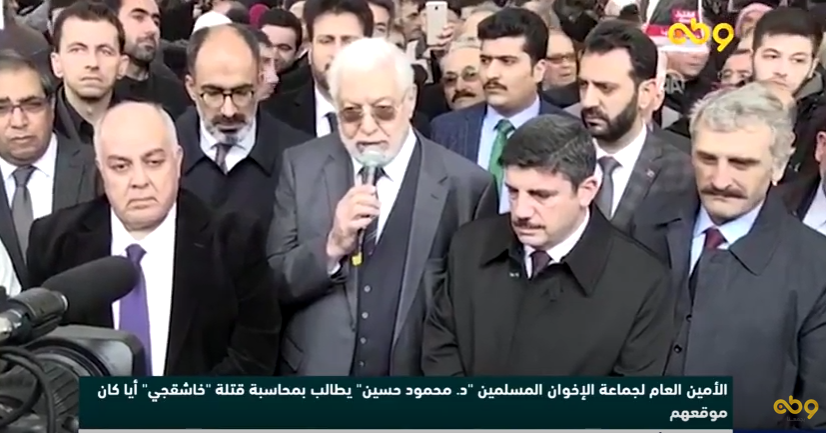 طالب الدكتور محمود حسين، الأمين العام لجماعة الإخوان المسلمين، بمحاكمة قتلة الصحفي السعودي جمال خاشقي، الذي قتل داخل قنصلية بلاده في إسطنبول الشهر الماضي. وقال حسين، خلال كلمة ...