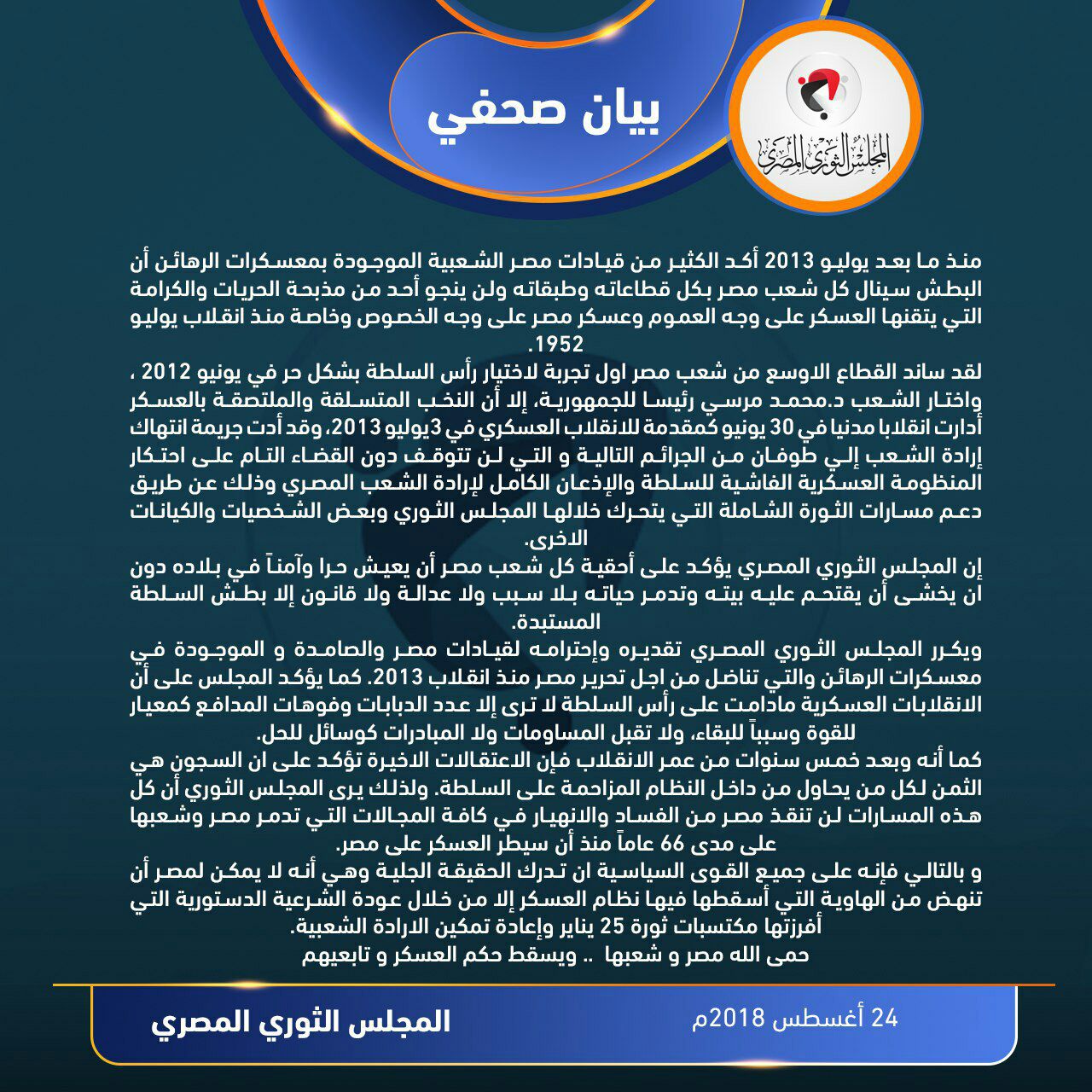 المجلس الثوري يحيي قادة مصر في سجون الانقلاب