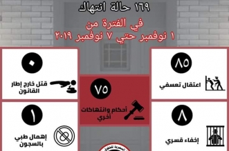 بالأرقام.. 169 انتهاكا لحقوق الإنسان فى أسبوع