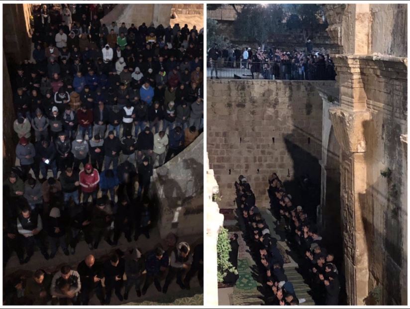 بالصور| فلسطينيون بالمسجد الأقصى يؤدون صلاة الغائب على الشهداء التسعة