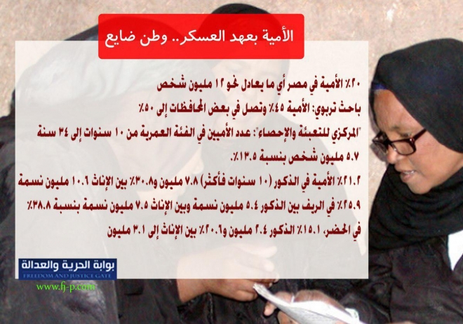 أظهر الجهاز المركزي للتعبئة العامة والإحصاء المصري، في المسح الأخير الذي أصدره في سبتمبر 2017، تراجع نسبة الأمية في مصر مقارنة بعدد السكان في تعداد بنسبة 25.8% عام ...