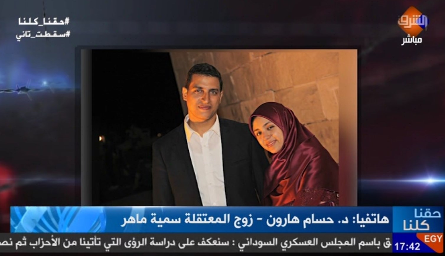 روى الدكتور حسام هارون، زوج المعتقلة سمية ماهر أبوحزيمة، تفاصيل الانتهاكات التي تتعرض لها على يد مليشيات السيسي. وقال هارون في مداخلة هاتفية لبرنامج “حقنا” كلنا على قناة ...
