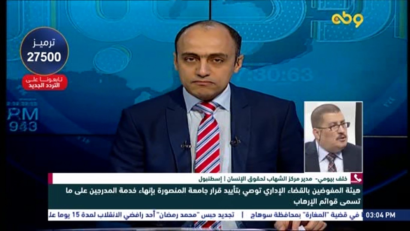 شاهد| خلف بيومي: فصل أساتذة الجامعات المدرجين بقوائم الإرهاب غير دستوري