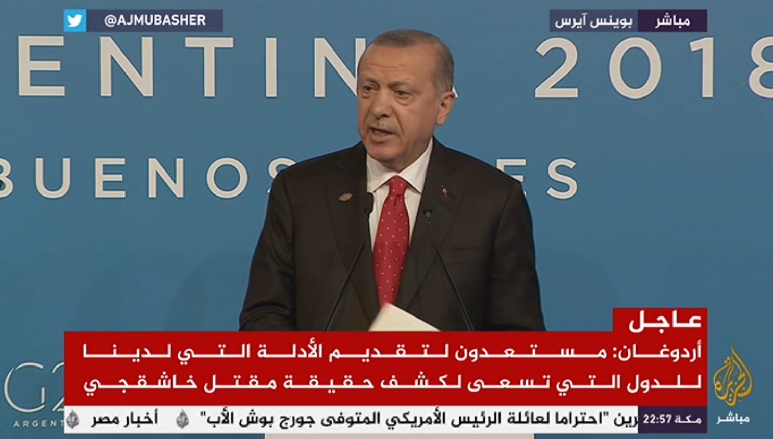 قال الرئيس التركي رجب طيب أردوغان إن جريمة قتل الصحفي السعودي جمال خاشقجي داخل قنصلية بلاده في اسطنبول كانت بمثابة امتحان واختبار للكثير من الدول. وأضاف أردوغان خلال ...