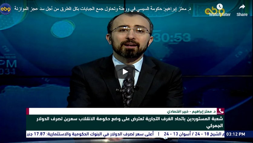 قال الدكتور معتز إبراهيم الخبير الاقتصادي: إن رفع حكومة الانقلاب سعر الدولار الجمركي على مزيد من السلع باعتبارها ترفيهية يؤكد أن الحكومة في ورطة وتبحث عن أي وسلة ...