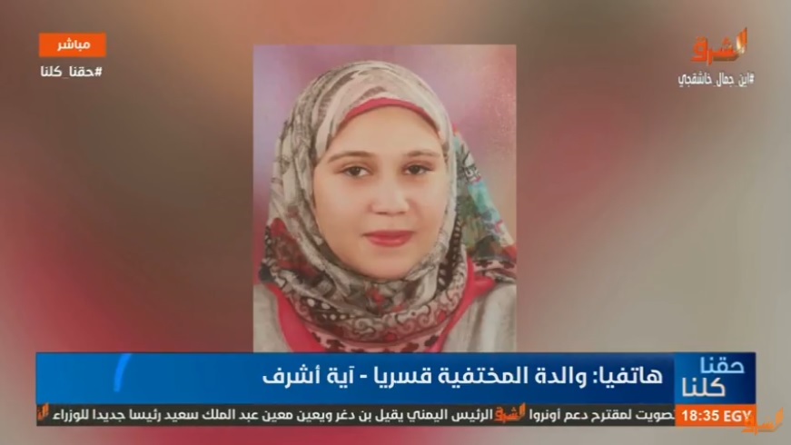 روت والدة آية الله أشرف، تفاصيل جديدة حول واقعة اختطافها من منزلها في الخانكة بمحافظة القليوبية، وإخفائها قسريًا على يد داخلية الانقلاب. وقالت والدة آية: إن داخلية الانقلاب ...