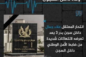 في حلقة جديدة من مسلسل الموت البطيء داخل سجون المنقلب السفاح السيسى، أعلن مركز الشهاب لحقوق الإنسان عن انتحار المعتقل علاء جمال (29 عاماً) داخل زنزانته الانفرادية في ...