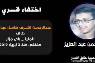 أكثر من 4 سنوات  مضت ولا زالت قوات الأمن بداخلية حكومة الانقلاب تخفي الطالب الجامعي “عبد الرحمن أشرف” قسرا، وذلك بعد اعتقاله تعسفيا ضمن مسلسل الجرائم والانتهاكات ...