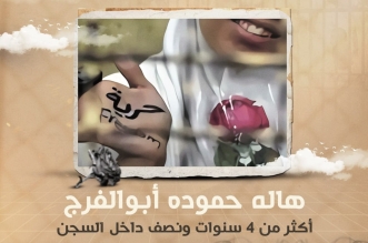 نددت مؤسسة جوار للحقوق والحريات باستمرار التنكيل بالمعتقلة “هالة حمودة أحمد أبوالفرج من محافظة القاهرة  على مدار ما يقرب ال5 سنوات، والحكم عليها بالسجن لمدة 3 سنوات يوم ...