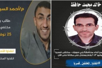 طالبت حملة “أوقفوا الإخفاء القسري” بالكشف عن مكان الاحتجاز القسري للشقيقين أحمد محمد السواح الطالب بالفرقة الرابعة بكلية الطب جامعة الأزهر وشقيقه أسامة الطالب بالفرقة الأولى بكلية الهندسة، ...