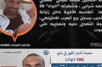 قالت منظمة نجدة لحقوق الإنسان إن "السجين محمد صبحي فهمي محمد شرابي وشهرته "البراد" 38 عاما لفظ أنفاسه الأخيرة داخل زنزانة التأديب بسجن برج العرب الاحتياطي، نتيجة التعدي عليه ...