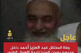 استشهد المعتقل عبد العزيز أحمد داخل محبسه بسجن المنيا نتيجة الإهمال الطبي المتعمد داخل السجون التي تفتقر لأدنى معايير سلامة وصحة الإنسان استمرارا لمسلسل الجرائم التي لا تسقط بالتقادم. وأشارت ...