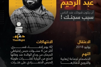 طالبت منظمة "حقهم "المختصة بالدفاع عن سجناء الرأي بالحرية للمهندس "أيمن عبدالرحيم" الذي يتواصل التنكيل به منذ اعتقاله في يوليو 2018 ويستحق الإفراج الوجوبي كونه تخطى مدة  ...