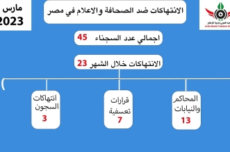 23 انتهاكا لحرية الإعلام في مصر واستمرار حبس 45 صحفيا وصحفية حتى نهاية مارس 2023