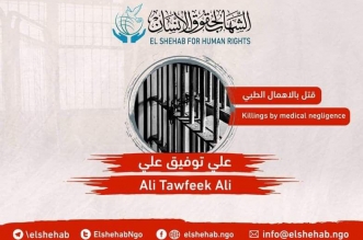 استشهد المعتقل علي توفيق علي، 71 عاما، من محافظة بني سويف داخل محبسه بسجن دمو العمومي بالفيوم نتيجة الإهمال الطبي عقب إصابته بفيروس كورونا. ويعتبر الشهيد هو خامس حالة وفاة ...